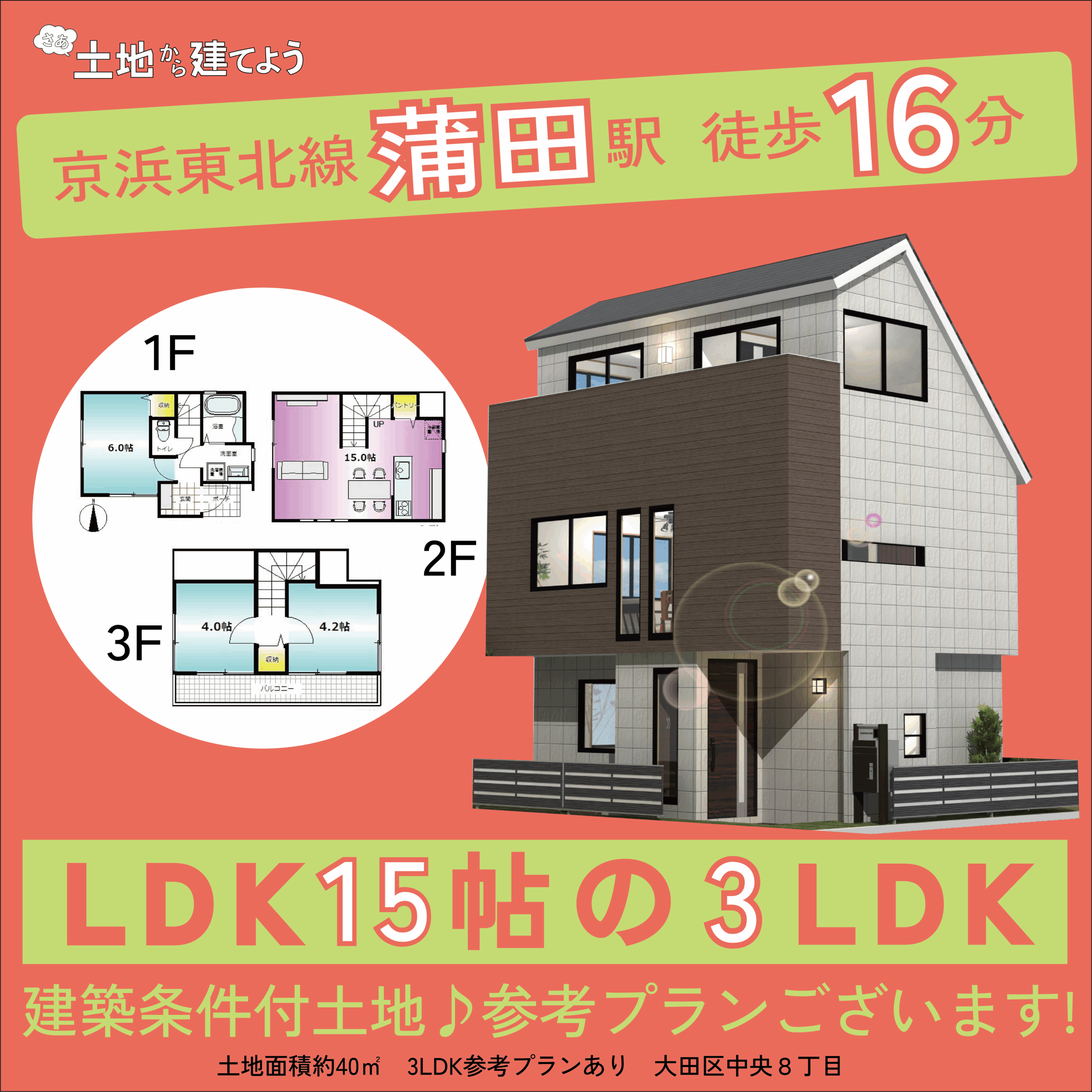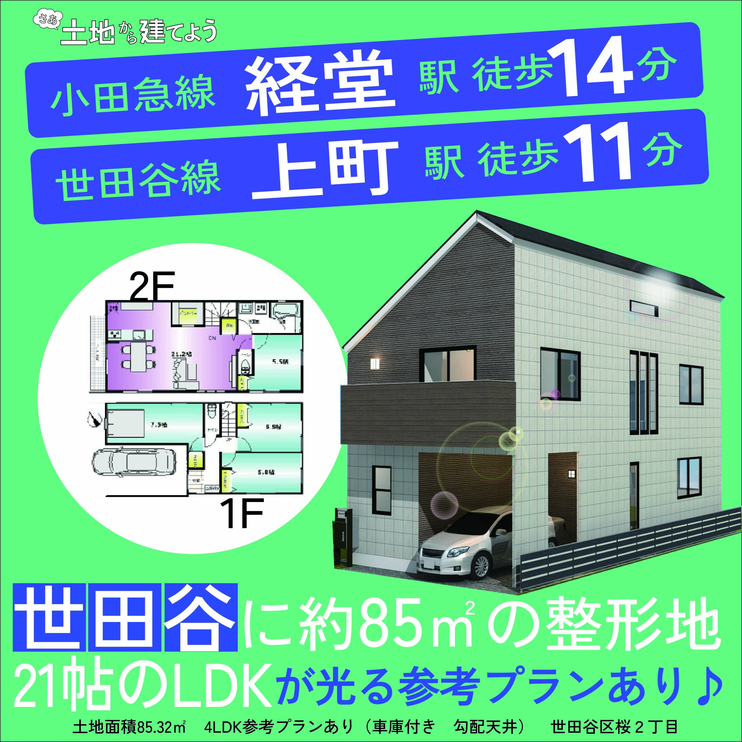 一軒家をお探し方の多くは、「新築戸建」を検索します。2025年8月現在「東京都世田谷区」で販売されている新築戸建ては約111軒。それに比べて販売されている土地の件数はなんと約392軒です。つまり、土地を選択肢に加えた場合には約4倍も近い条件の中から住まいを探すことができるんです!